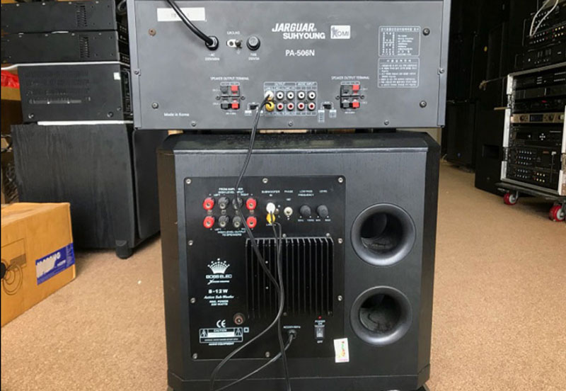 Hình ảnh kết nối Sub Ampli Jarugar Suhyoung PA-506N KOMI 4 kênh bằng cổng Line L/R