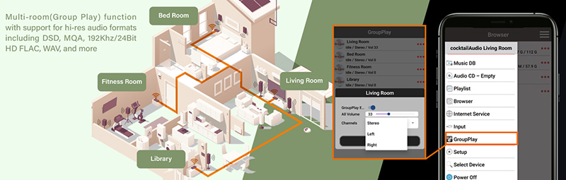Ngoài ra, để sử dụng như một hệ thống âm nhạc hoàn chỉnh và thuận tiện trong cả gia đình, DAC + Network Audio Player Cocktail Audio N25 không chỉ cung cấp Chức năng Đa phòng (Chơi theo nhóm), được phát triển cẩn thận bởi nhóm cocktailAudio trong nhiều năm, mà còn có đầu vào HDMI ARC để kết nối với TV.