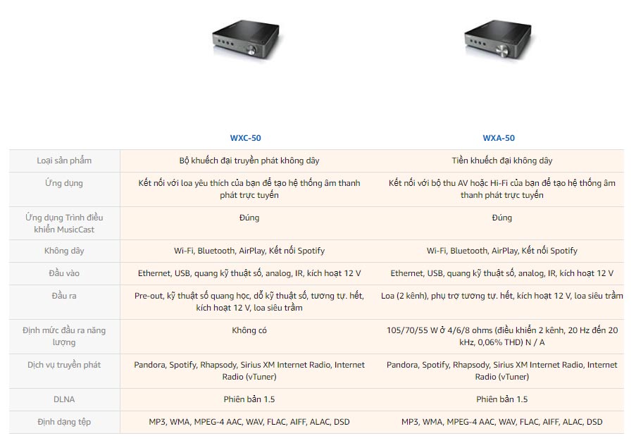 So sánh Yamaha WXC-50 vs Yamaha WXA-50
