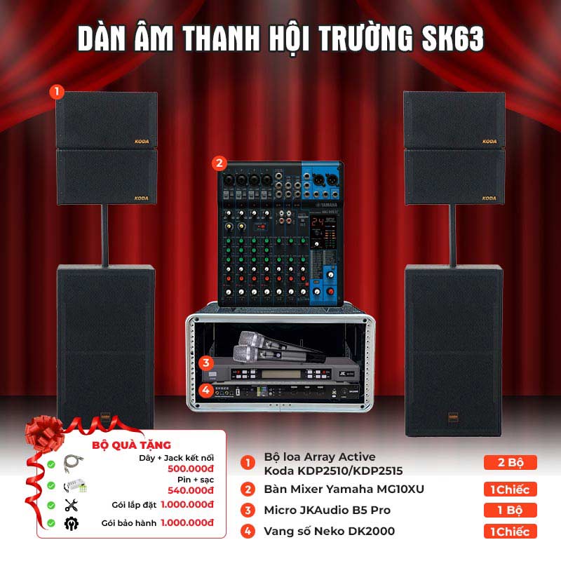 Đánh giá Dàn âm thanh hội trường SK63 (Koda KDP2510/KDP2515, Yamaha MG10XU, Neko DK2000, JKAudio B5 Pro)