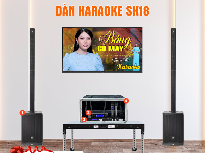 Đứng thứ 3 trong danh sách TOP 10 Dàn âm thanh karaoke cao cấp HAY - VIP nhất cho Biệt phủ, Biệt Thự chính là Dàn karaoke Column Array SK18. Đây là một trong những lựa chọn cao cấp nổi bật cho các không gian biệt thự, biệt phủ, penthouse hay villa có diện tích từ 50 - 100m2. Sở hữu những thiết bị âm thanh đến từ thương hiệu danh tiếng toàn cầu JBL, bộ dàn mang đến khả năng trình diễn âm thanh mạnh mẽ, sắc nét và đầy nội lực. Với cấu hình loa PRX One công suất lớn, vang số KX180A thông minh cùng micro không dây VM200hiện đại, hệ thống không chỉ phục vụ tốt nhu cầu karaoke mà còn tối ưu cho nghe nhạc, trình diễn âm thanh sống động trong các buổi tiệc gia đình. Có thể nói, đây chính là lựa chọn lý tưởng dành cho những ai mong muốn đưa không gian giải trí tại nhà lên tầm cao mới.