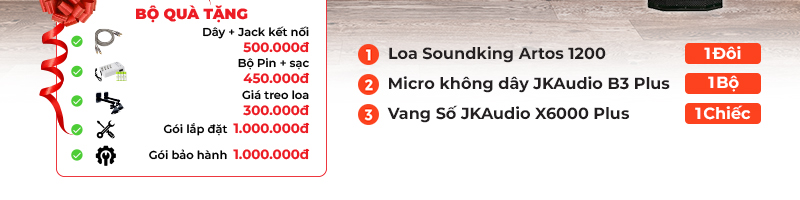 Tiếp theo chính là Dàn karaoke cao cấp SK51 - đâ là giải pháp hoàn hảo dành cho các gia đình yêu thích không gian giải trí tại nhà với thiết kế nhỏ gọn, hiện đại, phù hợp với nhiều phong cách nội thất. Sở hữu hệ thống âm thanh đến từ hai thương hiệu uy tín là Soundking và JKAudio, bộ dàn mang lại chất âm trong trẻo, mạnh mẽ và đầy cảm xúc. Đặc biệt, với sự góp mặt của loa Soundking Artos 1200 và vang số JKAudio X6000 Plus, người dùng có thể thoải mái thể hiện mọi thể loại âm nhạc yêu thích cùng với khả năng xử lý âm thanh chuyên sâu, micro nhạy và chống hú hiệu quả. SK51 không chỉ mang lại trải nghiệm hát karaoke sống động mà còn giúp kết nối các thành viên trong gia đình qua những phút giây thư giãn tuyệt vời.