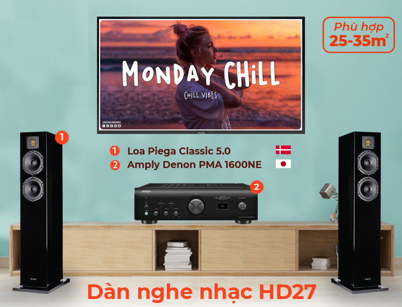 Với Dàn âm thanh nghe nhạc HD27 việc nghe nhạc hifi đối với bạn chưa bao giờ tuyệt vời hơn thế, dàn nghe nhạc với sự kết hợp hoàn hảo tốt nhất giữa Amply Denon PMA 1600NE (Xuất Xứ Nhật Bản) với cặp Loa Piega Classic 5.0 (Nhập Khẩu 100% Thụy Sỹ) Được các kỹ thuật viên ưu tú của HDRADIO đưa ra cấu hình thiết kế. Dàn nghe nhạc cao cấp HD27 thích hợp lắp đặt trong các không gian phòng khoảng 20 đến 35 mét vuông!