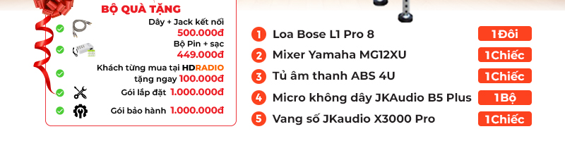Đánh giá Dàn âm thanh sân khấu biểu diễn Column Array SK14 (Bose L1 Pro 8, Yamaha MG12XU, JKAudio B5 Plus, X3000 Pro, Tủ Rack ABS 4U)