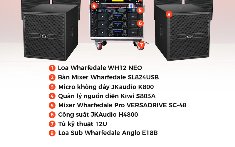 Đánh giá Dàn âm thanh sân khấu biểu diễn PUB-LOUNGE SK06 (Wharfedale WH12 NEO, Anglo E18B, VERSADRIVE SC-48, SL824USB, JKAudio K800, H4800, KIWI S803A, Tủ Rack 12U)