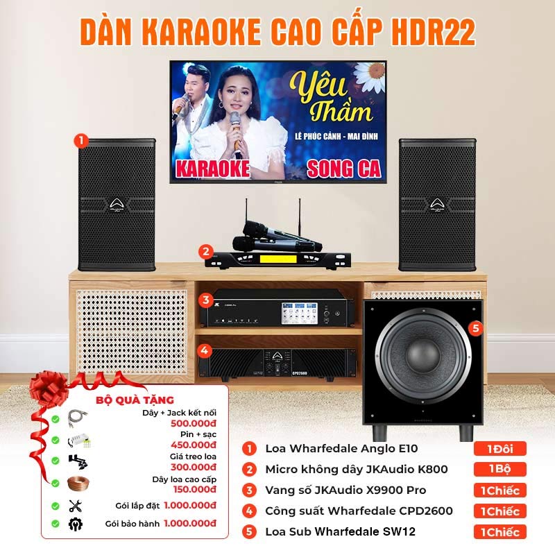 Bộ sản phẩm Dàn Karaoke cao cấp HDR22 bao gồm những thiết bị: