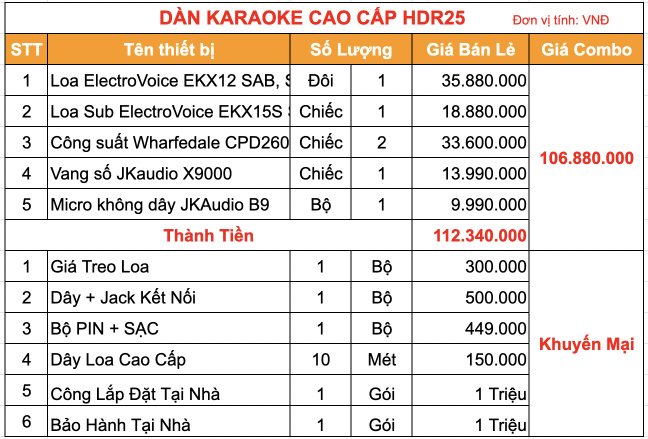 Đánh giá Dàn Karaoke Cao Cấp HDR25 ( Electrovoice EKX12, Sub EKX15S, Công suất, Vang số, Micro JKaudio B9 )