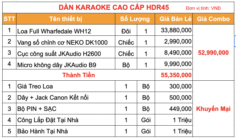 Đánh giá Dàn Karaoke cao cấp HDR45 (Wharfedale Wh12, Công suất, Neko DK1000, Micro JKaudio B9)