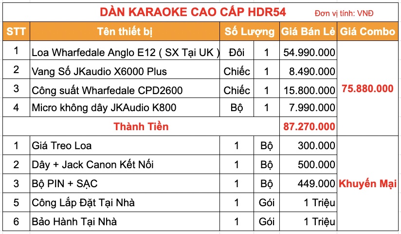 Đánh giá Dàn Karaoke Cao cấp HDR54 (Whafedale Anglo E12, Công suất, Jkaudio X6000 Plus, K800)