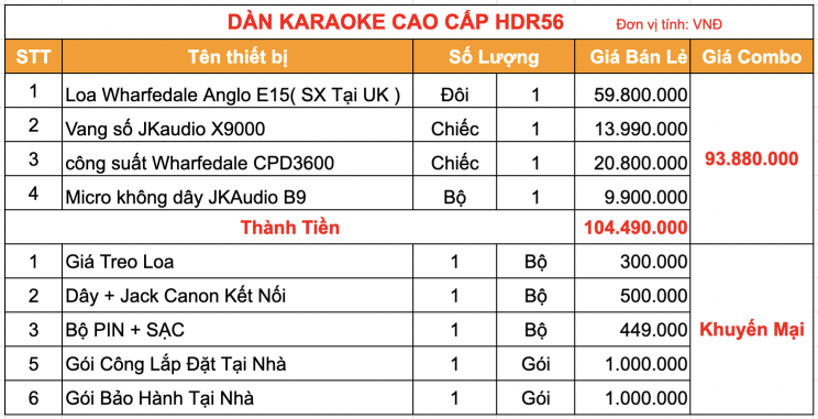 Dàn Karaoke Cao Cấp HDR56 (Whafedale Anglo E15, CPD3600, Vang số, Micro) Dàn Karaoke Cao Cấp HDR56 (Whafedale Anglo E15, CPD3600, Vang số, Micro)
