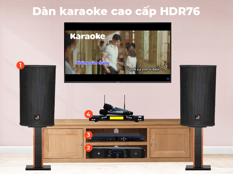 Hệ thống dàn karaoke cao cấp HDR76 là bản phối ghép hoàn chỉnh từ 4 thiết bị: