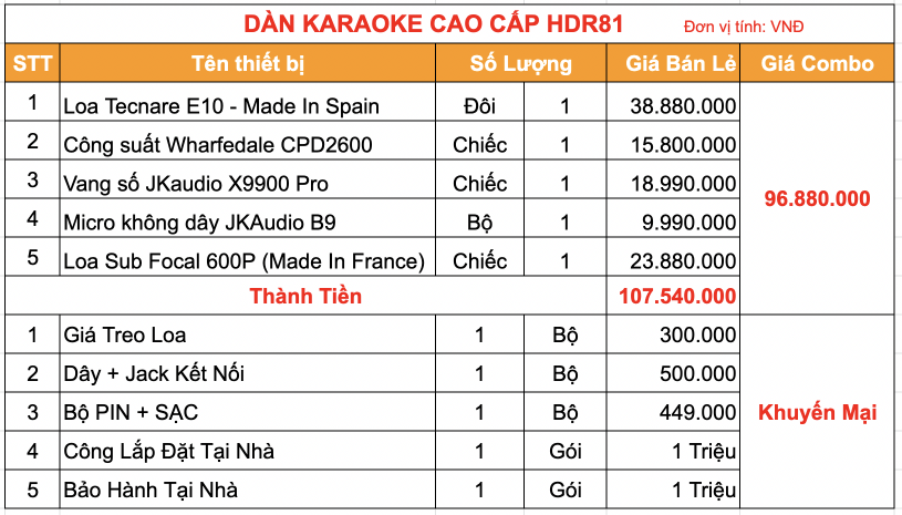 Đánh giá Dàn karaoke cao cấp HDR81 ( Tecnare E10, Công suất, Vang số, Micro JKaudio B9, Loa sub )