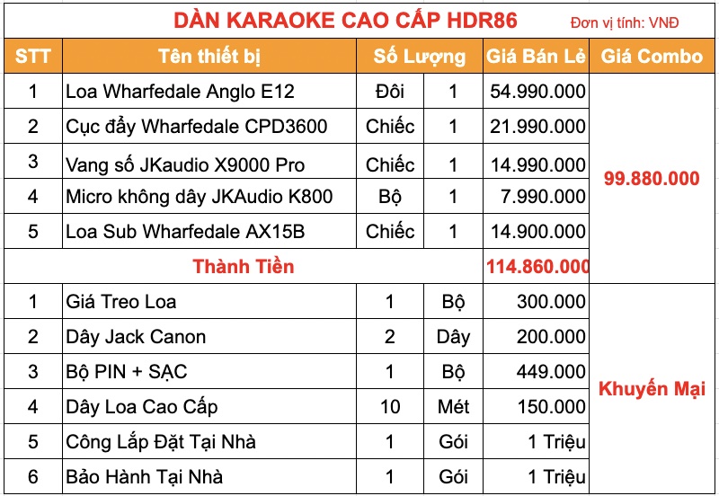 Đánh giá Dàn karaoke cao cấp HDR86 (Wharfedale Anglo E12, AX15B, CPD3600, JKaudio X9000 Pro, K800)