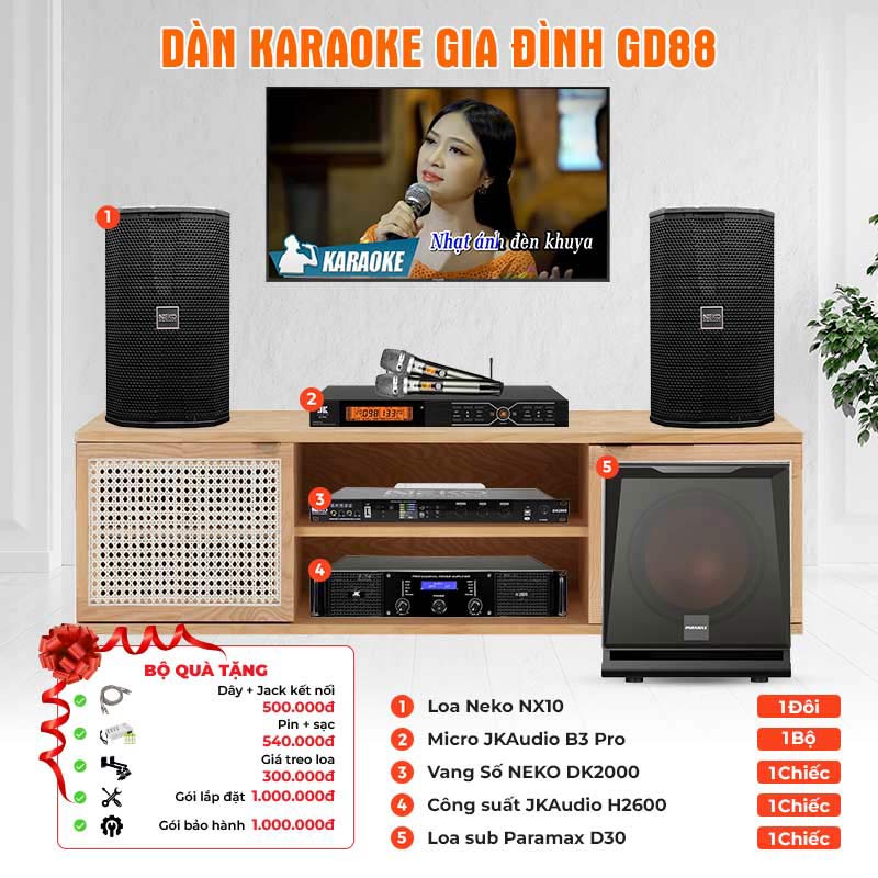 Dàn Karaoke gia đình GD88 (Neko NX10, NEKO DK2000, JKAudio H2600, Sub Paramax  D30, JKAudio B3 Pro) Dàn Karaoke gia đình GD88 (Neko NX10, NEKO DK2000, JKAudio H2600, Sub Paramax D30, JKAudio B3 Pro)