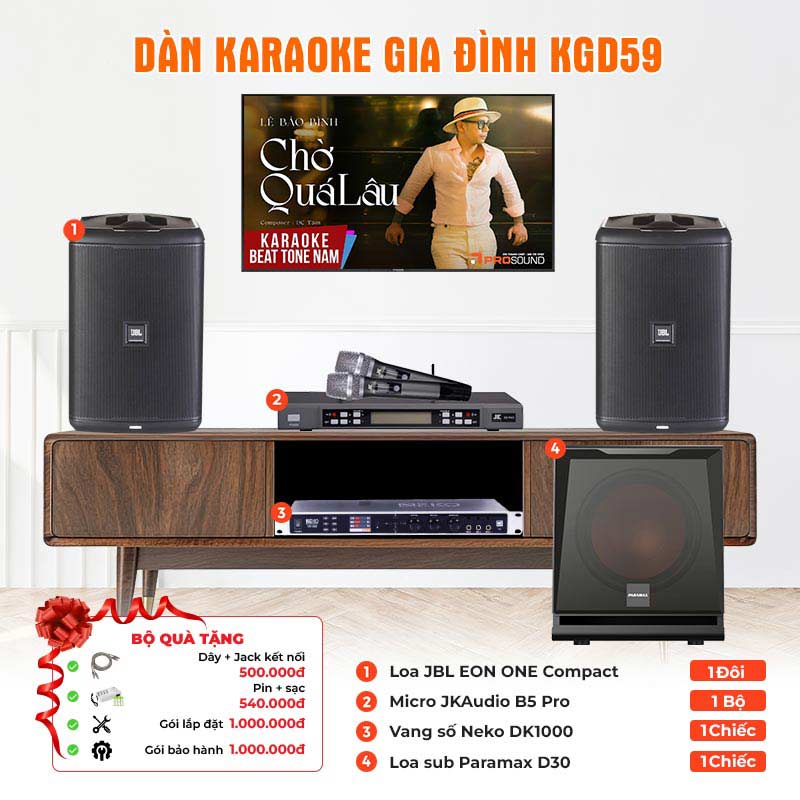 Dàn karaoke gia đình KGD59 (JBL Eon One Compact, Neko DK1000, JKAudio B5 Pro, sub Paramax D30) Dàn karaoke gia đình KGD59 (JBL Eon One Compact, Neko DK1000, JKAudio B5 Pro, sub Paramax D30)