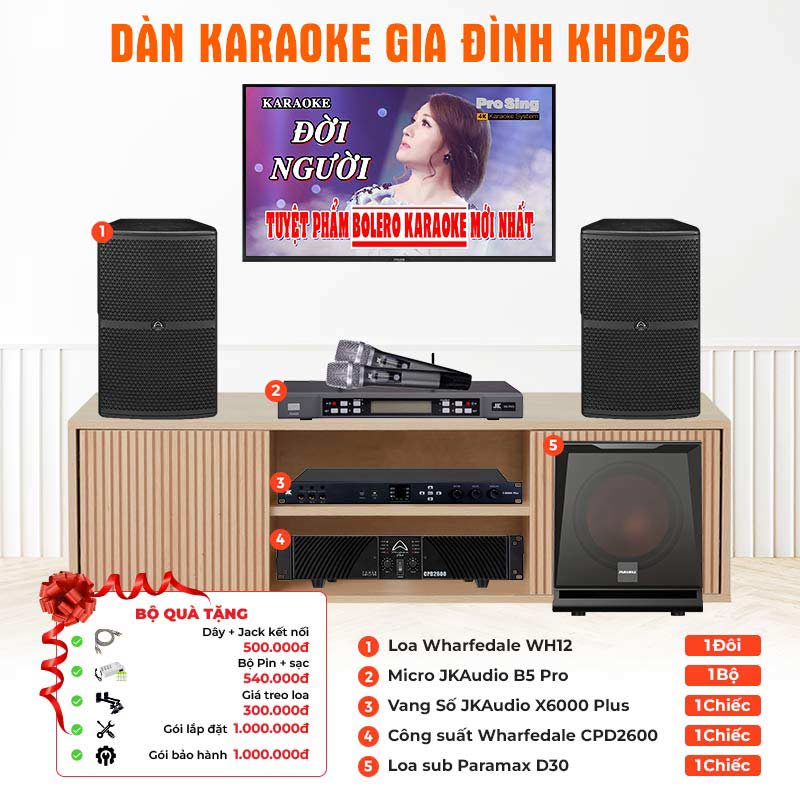 Đánh giá Dàn karaoke gia đình KHD26 (Wharfedale WH12, CPD2600, sub Paramax D30, JKaudio X6000 Plus, B5 Pro)