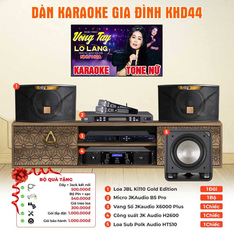 Đánh giá Dàn karaoke gia đình KHD44 (JBL Ki110 Gold Edition, JKAudio H2600, X6000 Plus, B5 Pro, Polk Audio HTS10)