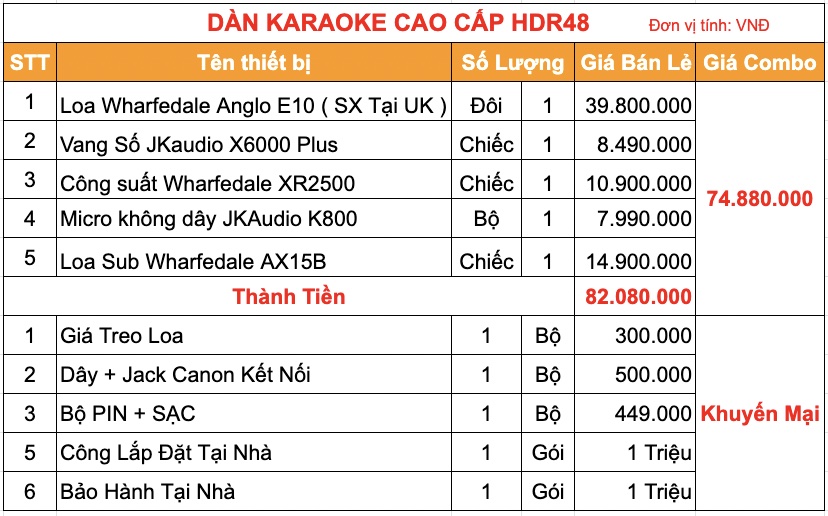 Đánh giá Dàn Karaoke Cao Cấp HDR48( Whafedale Anglo E10, XR2500, Jkaudio X6000 Plus, K800, Sub )