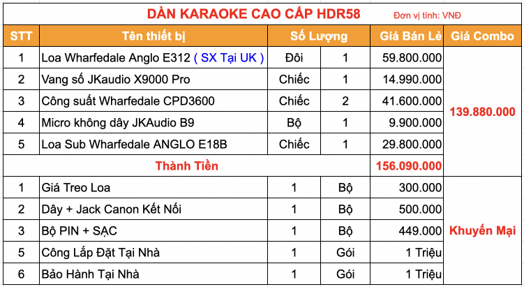 Đánh giá Dàn Karaoke Cao Cấp HDR58 ( Whafedale Anglo E312, CPD3600, Vang số, Micro, Sub E18B)