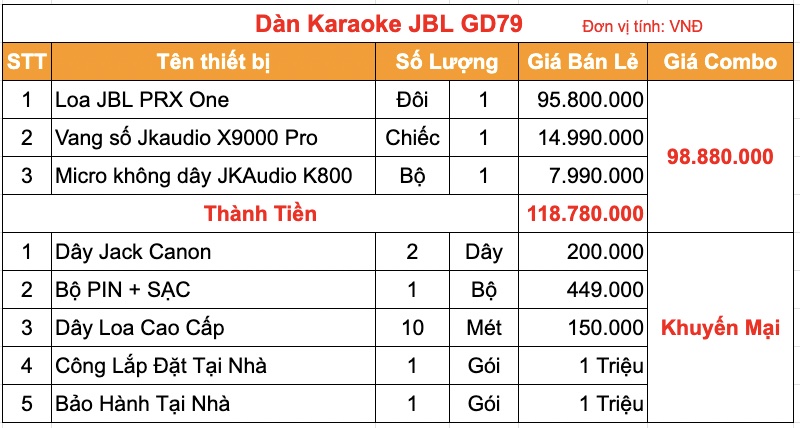 Dàn karaoke JBL cao cấp GD79 (JBL PRX One, JKaudio X9000 Pro, K800) Dàn karaoke JBL cao cấp GD79 (JBL PRX One, JKaudio X9000 Pro, K800)