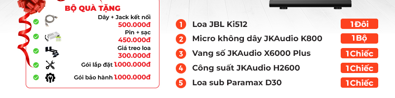 Đánh giá Dàn karaoke JBL HK44 ( JBL Ki512, X6000 Plus, H2600, Micro K800, D30)
