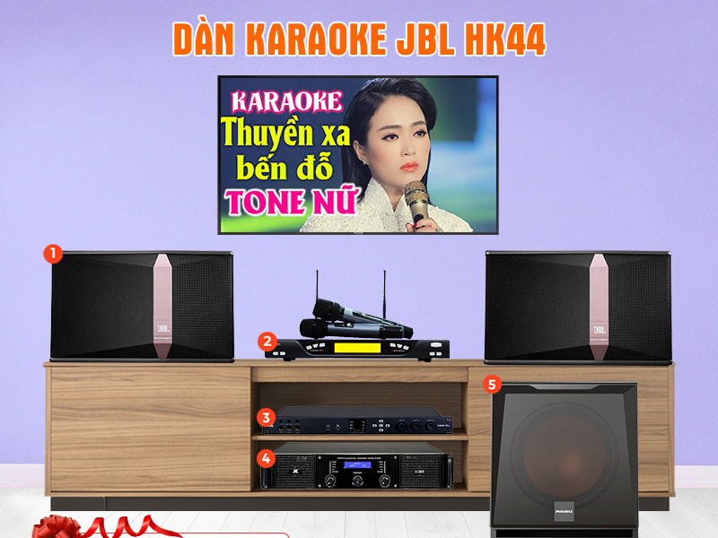 Dàn karaoke JBL HK44 là sự phối ghép hoàn hảo giữa các thiết bị âm thanh đến từ các thương hiệu có tiếng trên thị trường âm thanh karaoke: JBL, JKAudio và Paramax. Với những tính năng cao cấp và sự hỗ trợ tối đa cho giọng hát, bộ hát karaoke tại nhà hứa hẹn sẽ đem lại trải nghiệm ca hát cực kỳ bùng nổ.