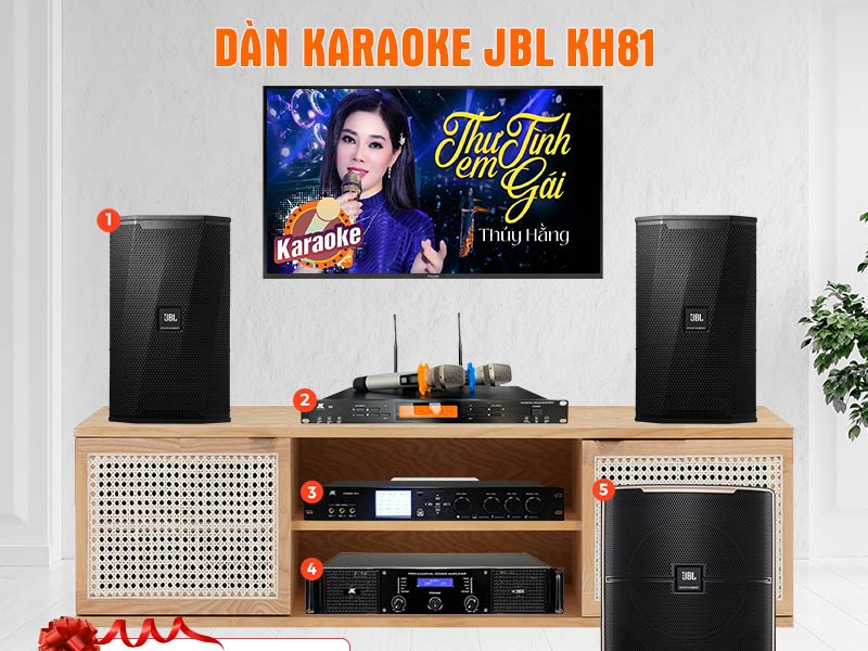 HDRADIO xin trân trọng giới thiệu đến các bạn Dàn karaoke JBL KH81, được thiết kế và phối ghép từ những thiết bị âm thanh chính hãng đến từ hai thương hiệu danh tiếng trên thế giới là JBL và JKAudio. Trải qua các bài test âm thanh tại phòng demo, dàn âm ly karaoke được đánh giá là một trong những hệ thống âm thanh sở hữu cấu hình mạnh mẽ, sang trọng cùng âm thanh ấn tượng, là sự lựa chọn lý tưởng cho không gian ca hát, giải trí tại gia của bạn từ 25 - 45m2.