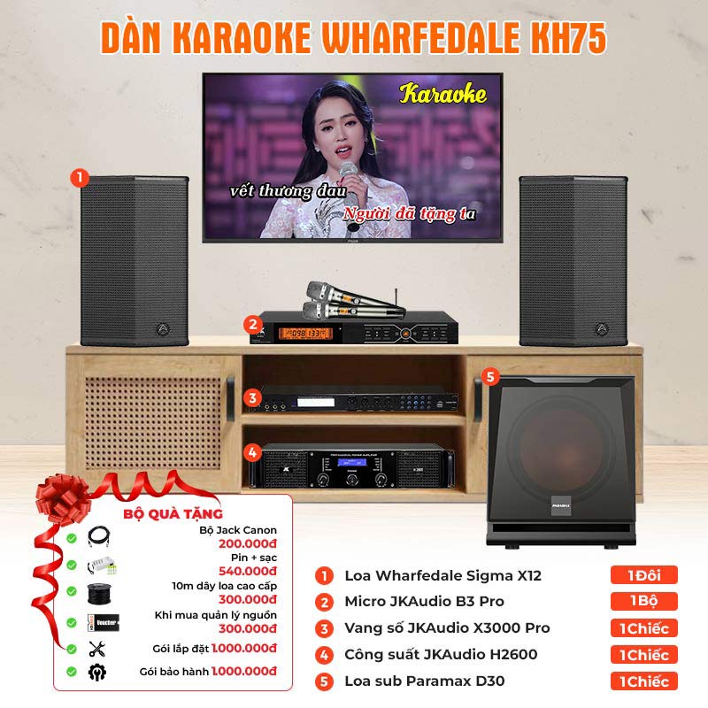 Dàn Karaoke Wharfedale KH75 ( Wharfedale Sigma X12, Công suất, vang số, micro B3 Pro, loa sub D30) Dàn Karaoke Wharfedale KH75 ( Wharfedale Sigma X12, Công suất, vang số, micro B3 Pro, loa sub D30)