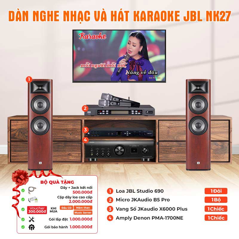 Đánh giá Dàn nghe nhạc và Hát karaoke JBL NK27 (JBL 690, Denon 1700NE, B5 Pro, X6000 Plus)