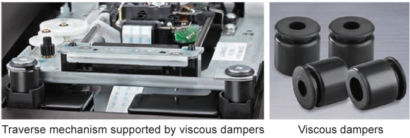 Ổ đĩa SA-CD / CD mới trên đầu CD Accuphase DP750 có hoạt động yên tĩnh với mức âm thanh giảm xuống còn 1/2 (Ngay cả độ lệch tâm rất nhỏ hoặc cong vênh của đĩa phương tiện thường có thể dẫn đến nhiều loại rung động và tiếng ồn gió khi quay ở mức cao tốc độ). Bộ giảm chấn của DP-750 ngăn chặn sự lan truyền của những rung động như vậy, và thiết kế đặc biệt giúp tiếng ồn hoạt động giảm xuống còn khoảng một nửa so với các thiết kế trước đó, giúp khi sử dụng các bạn quên rằng là máy đang quay ổ đĩa.
