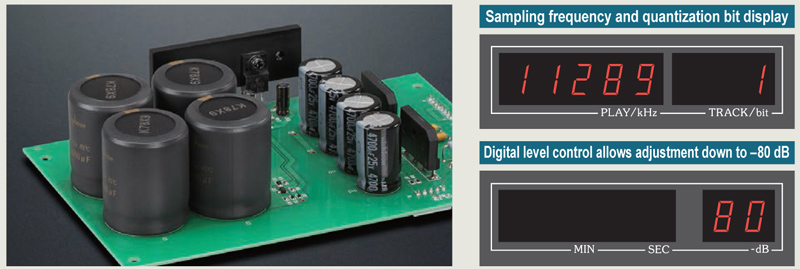 Ngoài việc theo dõi số lượng và thời gian chơi trôi qua, màn hình trên Đầu CD Accuphase DP750 cũng có thể hiển thị tần số lấy mẫu và số lượng bit lượng tử hóa.