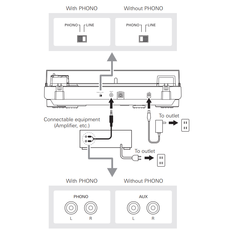 - Bộ khuếch đại tiền phono tích hợp có thể chuyển đổi cho đầu ra phono hoặc line-level output