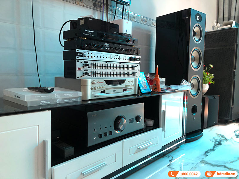 Dàn nghe nhạc của anh Minh là sự kết hợp hoàn hảo giữa cặp loa Focal Aria 948 cùng chiếc Amply Denon AVC A110 cho trải nghiệm nghe nhạc Hifi hoàn hảo. Hệ thống dàn nghe nhạc cao cấp này được các kỹ thuật viên giàu kinh nghiệm bên HDRadio setup hoàn hảo, không chỉ phù hợp với không gian phòng và kệ tivi phòng khách của gia đình anh, vừa đem đến trải nghiệm âm thanh nghe nhạc ấn tượng, đặc biệt là các ca khúc nhạc trữ tình theo đúng ở thích của anh.