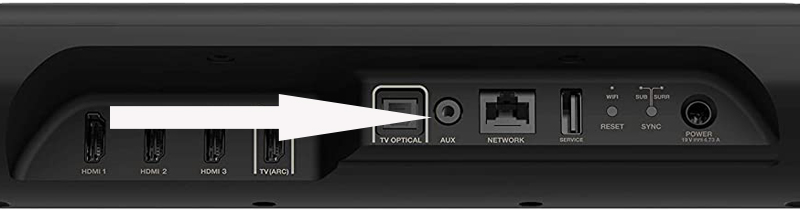 Bước 2: Cắm đầu cáp 3,5mm còn lại vào cổng AUX của thanh soundbar