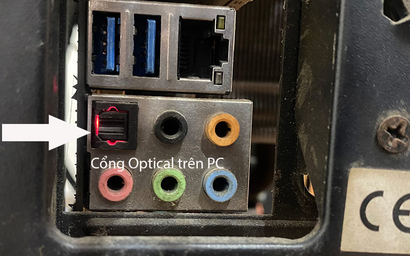 Bước 1: Cắm một đầu cáp Quang vào cổng âm thanh Optical của máy tính để bàn PC