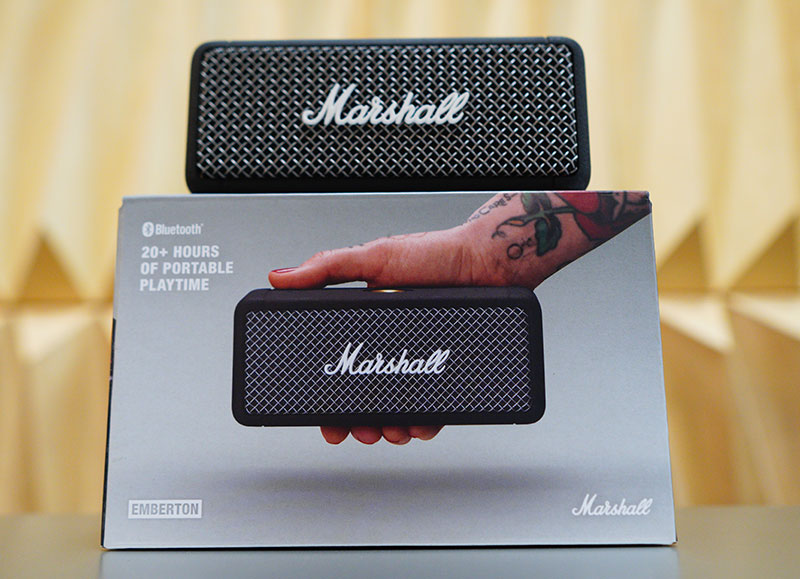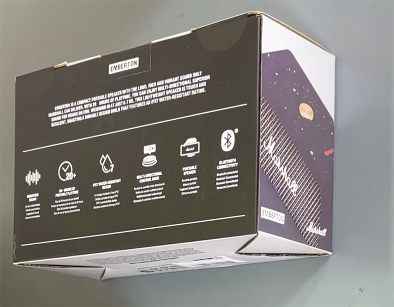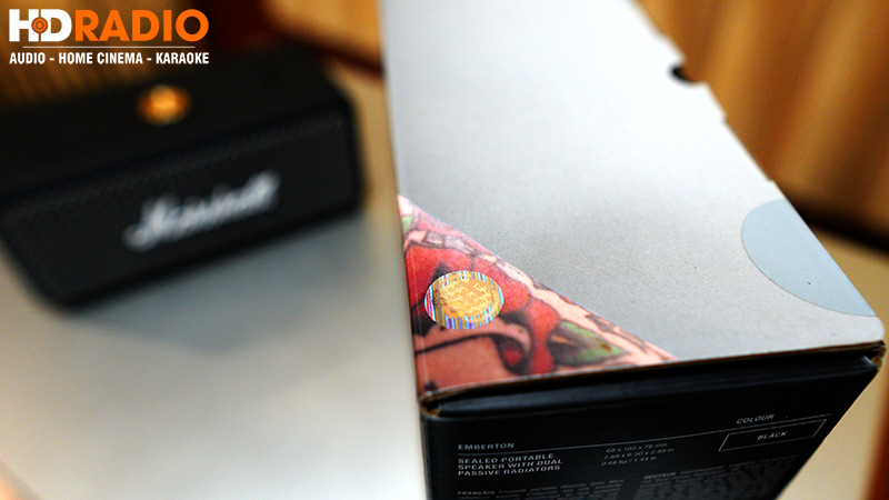 Hộp loa marshall emberton chính hãng ASH có tem 7 màu của hãng ASH cùng 1 tem phụ của công ty. Màu sắc hộp tươi mới sắc nét do sử dụng màu in độc quyền từ nhà máy sản xuất của hãng marshall.