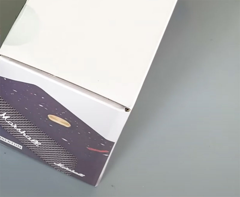 Hộp loa marshall emberton fake KHÔNG có tem ASH 7 màu, không có tem phụ của hãng ASH, màu sắc hộp nhòe, ám màu nâu bởi chất lượng mục không tốt.