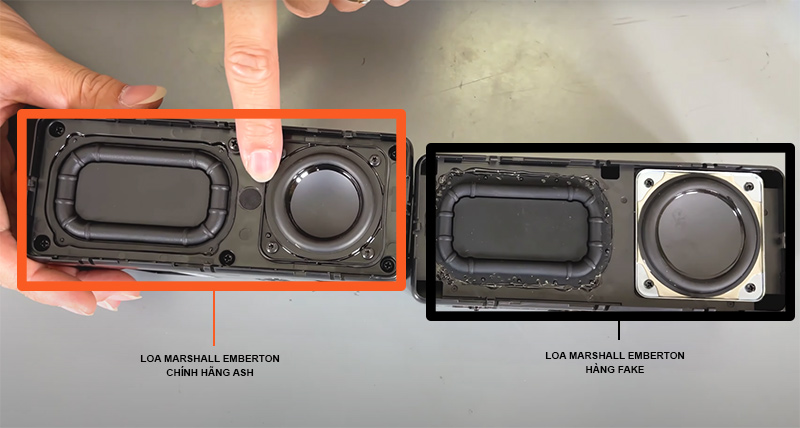 - Phân biệt loa marshall emberton chính hãng ASH và loa marshall emberton fake thông qua hệ thống củ loa và âm thanh