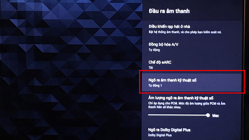 • Tùy theo mẫu tivi, có thể bạn cần chuyển cài đặt chuyển cài đặt ngõ ra âm thanh từ Tivi sang hệ thống âm thanh. chuyển cài đặt một cách đơn giản trên tivi bằng cách: Vào mục cài đăt >>> Hiển thị & Âm thanh >>> Đầu ra âm thanh >>> Ngõ ra âm thanh kỹ thuật số
