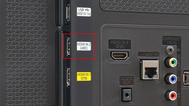 Bước 2: Cắm đầu Dây HDMI ARC còn lại vào cổng có ký hiệu HDMI IN ARC trên Tivi