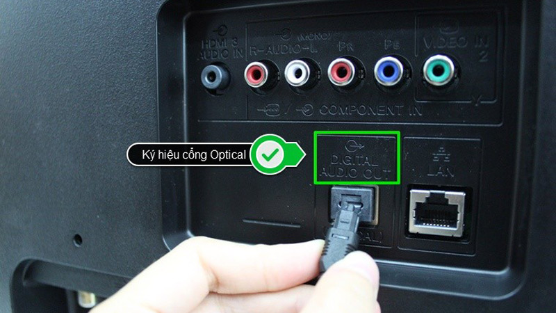 Bước 2: Cắm đầu dây quang còn lại vào cổng có ký hiệu DIGITAL AUDIO OUT trên Tivi