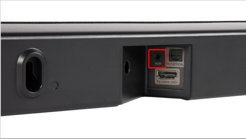 Bước 1: Cắm một đầu dây 3,5 vào cổng có ký hiệu AUX trên loa soundbar