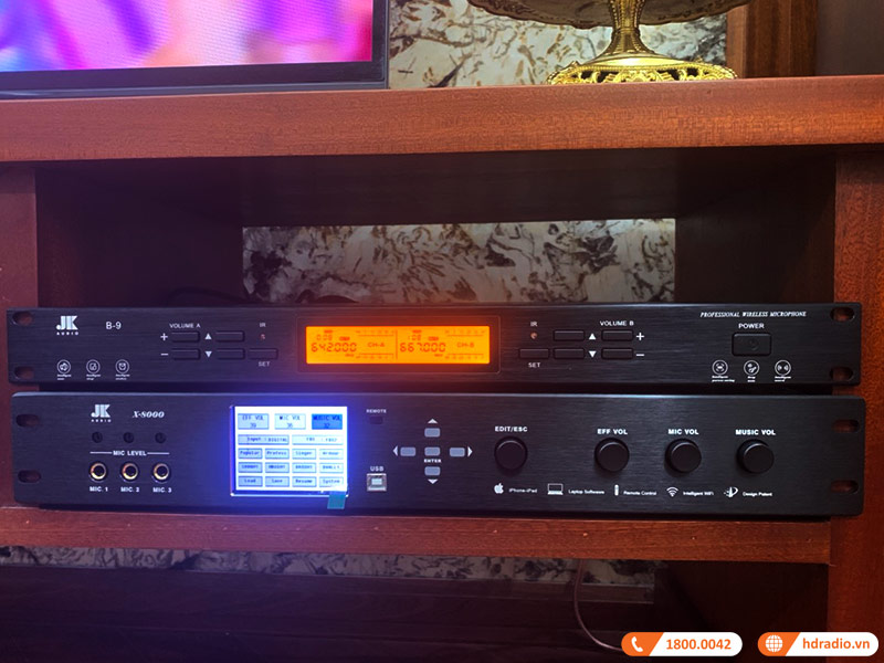 • Hệ thống Vang số JKaudio X8000. giúp bạn dễ dàng điều chỉnh âm thanh để hát hay như một ca sĩ chuyên nghiệp và đặc biệt không rú rít