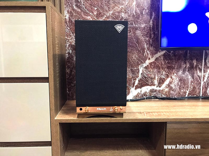 • Loa Klipsch có thiết kế màu nâu gỗ cực đẹp với phù hợp với kệ phòng khách của gia đình anh Minh