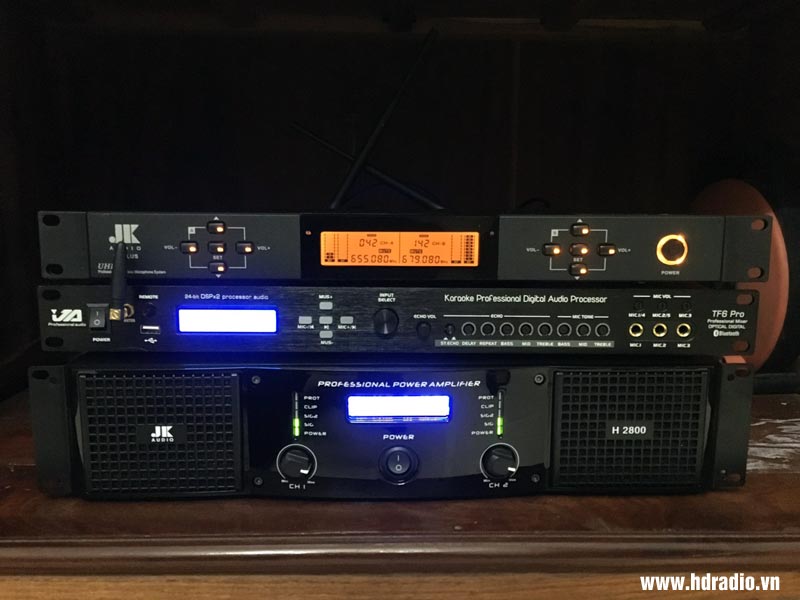 Lắp dàn karaoke anh Cương ở Đông Anh, Hà Nội (Loa Wharfedale 5190, Cục công suất JKAudio H2800, Vang cơ JA TF6 Pro, Micro không dây JKAudio B5 Plus)