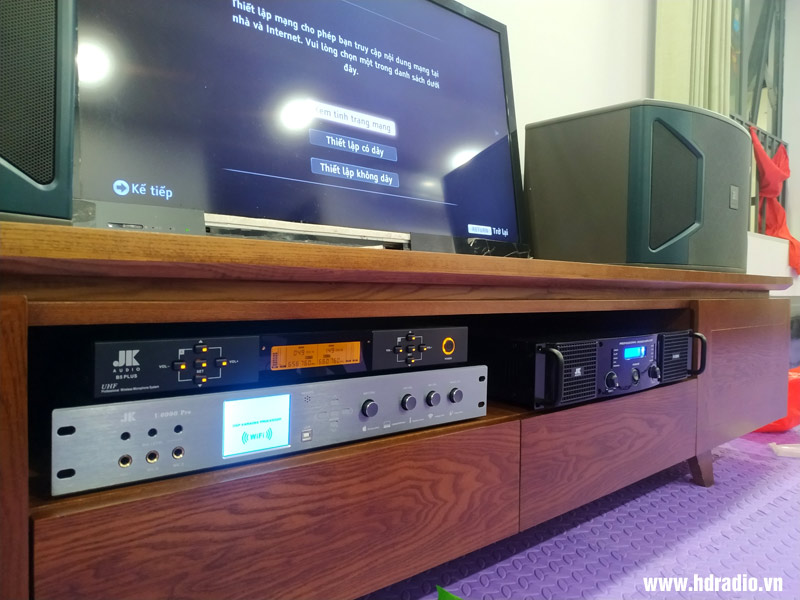 Lắp dàn karaoke anh Phong ở Định Công, Hoàng Mai, HN (Loa JBL Ki312, Cục công suất JKAudio H2600, Vang số JKaudio X6000 Pro, Micro JKAudio B5 Plus)