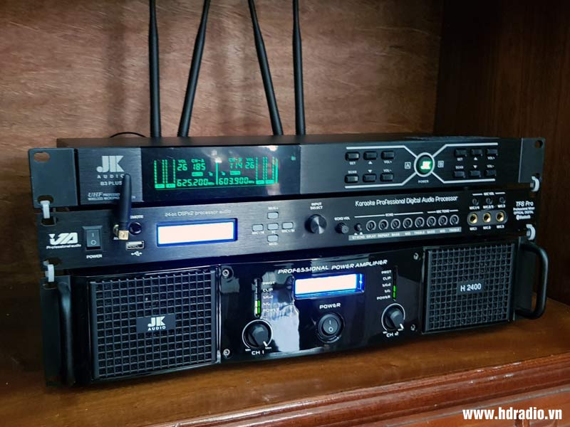 Lắp dàn karaoke anh Trung ở Bắc Từ Liêm, Hà Nội (Loa CAVS LD710, Cục công suất JKAudio H2400, Vang cơ JA TF6 Pro, Micro không dây JKaudio B3 Plus)