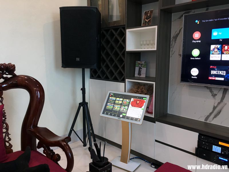 Lắp dàn karaoke cao cấp anh Minh ở Đại Từ, Thái Nguyên (Loa Electro Voice EKX15 SAB, Công suất JKAudio H2800, Vang số JKaudio X8000, Micro JKAudio B9, Đầu ViệtK Pro 4TB, Màn cảm ứng VietK 22)