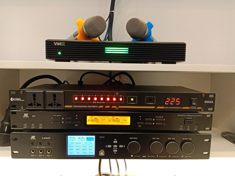 Lắp dàn karaoke Cao Cấp chị Châu ở quận 12, Hồ Chí Minh (Loa JBL KP6010, Loa Sub Electro Voice EKX18S SAB, Cục công suất JKAudio H4800, Vang số JKaudio X9000, Micro không dây JKAudio B9, Đầu ViệtK 4K Plus 6TB, Quản lý nguồn KIWI S802A)