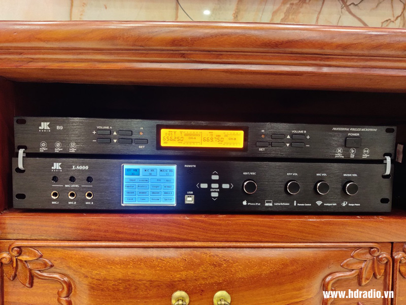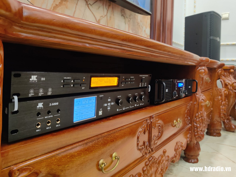 Lắp dàn karaoke cao cấp cho anh Dũng ở Long Biên, Hà Nội (Loa Wharfedale WH10, Cục đẩy JKaudio H2600, Micro không dây JKAudio B9, Loa Sub JBL Studio 260P, Vang số JKaudio X8000)